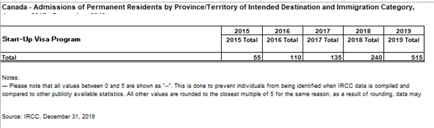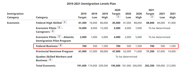 该项目于2013年4月问世,当年移民局对该项目有很高的盼望,所以当年移民局给出大概每年2750个名额。但到了2019年开始,移民局从该名额数量从2750个锐减到目标是700个,而且还包含联邦自雇移民,最低会接受500个名额,最多可以到1500个名额。如果联邦创业移民 和 联邦自雇移民是平分的话,每个项目的目标人数是350人,这种可加可减的灵活机制一直会延续至2021年。官方数据统计请看截图