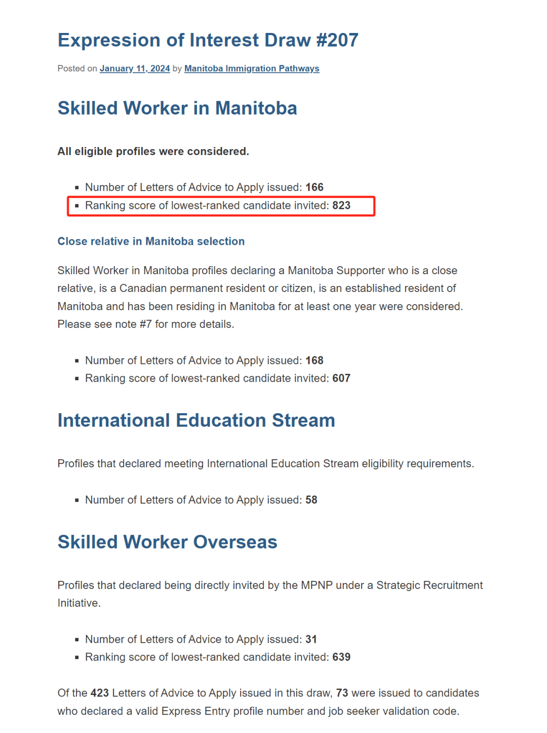曼省提名上周四2024年1月11日发出最新邀请,分别如下: