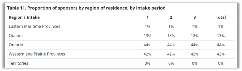 来自东部海洋省份(如新斯科舍、新不伦瑞克、爱德华王子岛等)的担保人比例较低,仅约为1%;