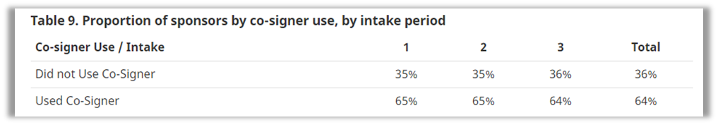 约64%至65%的担保人选择使用配偶或同居伴侣作为共同担保人(co-signer);