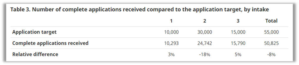 第三轮(2022年):目标为15,000份,IRCC接收了15,790份完整申请,超出目标约5%。