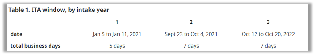 2021年轮次:ITA邀请发放时间为2021年9月23日至10月4日,共7个工作日。