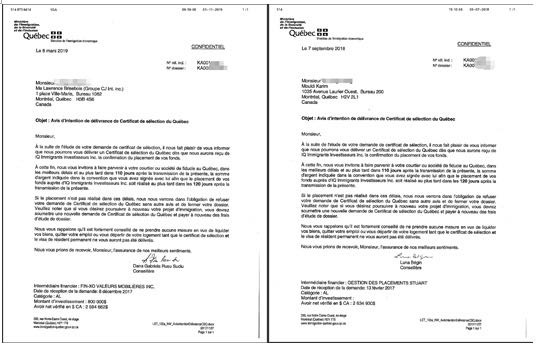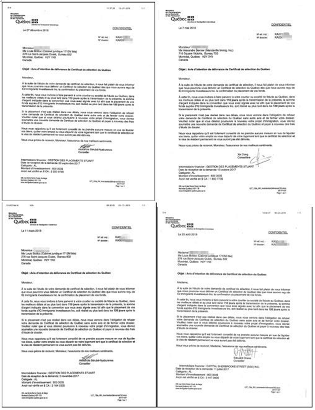 海量成功个案,实力雄厚的表现(下图为少量魁省批准信函)