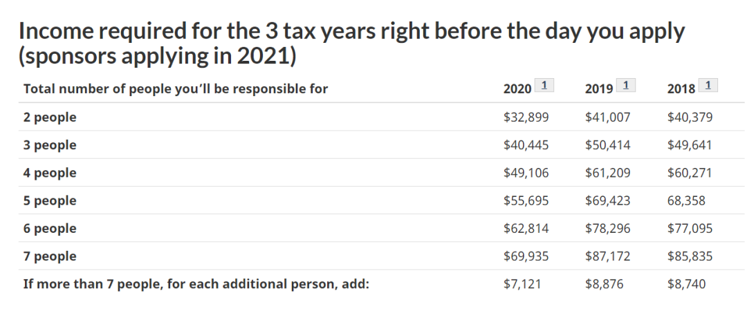 IRCC对担保父母/祖父母者的收入是有明确的要求。除魁省外,在过去三年报税年度中,担保人的收入要求如下: