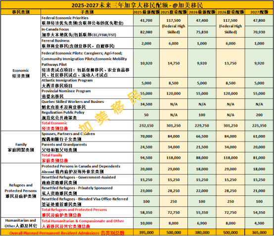 附录:2025年加拿大移民配额一览