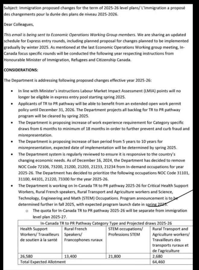 从2025年春季开始,IRCC计划取消在快速通道(Express Entry)系统中对劳动力市场影响评估(LMIA)的加分。这意味着申请人将更依赖自身的教育背景、工作经验等综合条件。(这一点已被多方讨论过。)