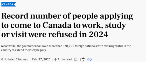 此外,移民权益组织批评政府从移民申请中牟利,2024年临时居民申请费总收入达7.079亿加元,其中3.54亿加元来自被拒申请者。