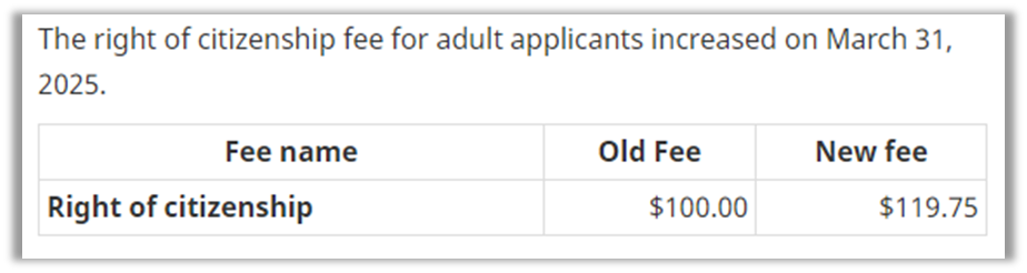 自2025年3月31日起,成年人的加拿大入籍费用已上调。