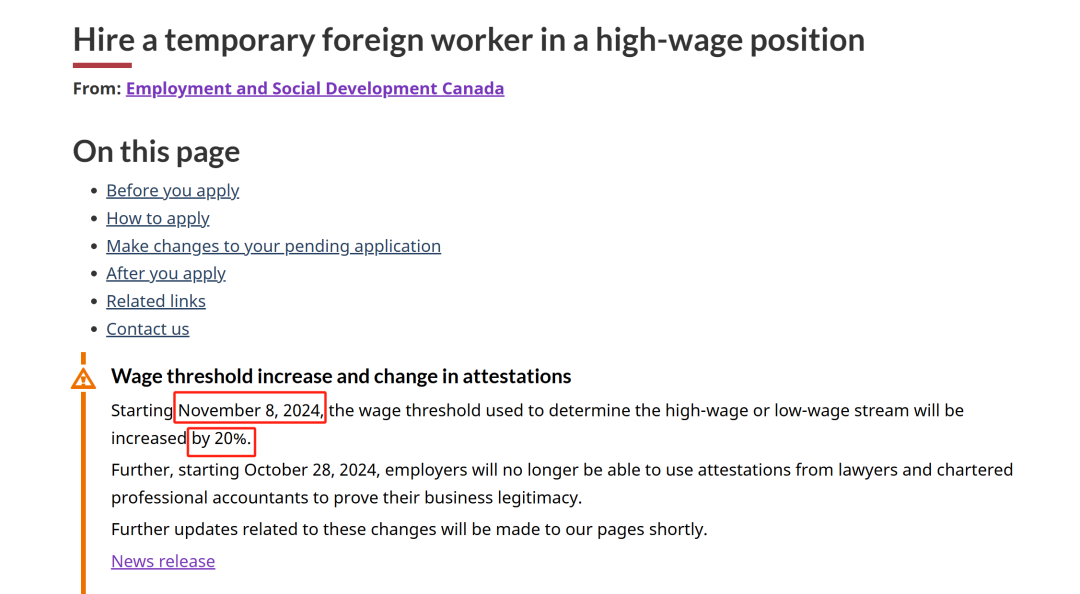 以安省为例,11月8日之前递交的申请,薪水在$28.39/小时以上的职位,属于高工资职位,而11月8日之后递交的申请,薪水必须达到$34.07/小时,才属于高工资职位。