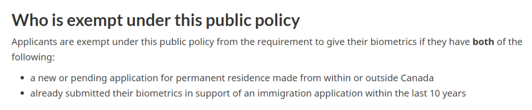 1. 近十年内已经递交过移民类指纹信息(already submitted their biometrics in support of an immigration application within the last 10 years)