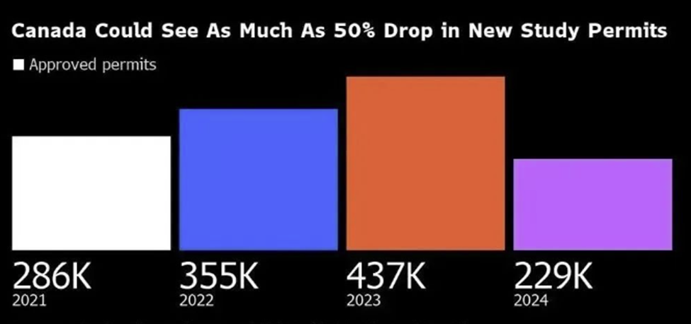 如果今年的留学生申请数量和批准率保持不变,那么2024年全年批准的学签数量可能会下降到229,000份。与去年批准的436,678份学签相比,将大幅下降48%。