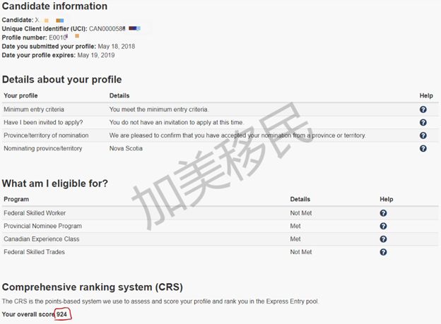 大家看到这位NS省提名申请人,联邦EE的初始分数比较低(只有324分),这个分数是不可能被直接邀请到的。但因为在Nova Scotia 有1年的符合省提名的工作经验,达到条件申请NS EE,被NSEE批准后,申请人可以获得600分的额外加分,总分一跃到924分,就铁定会被移民局邀请到。