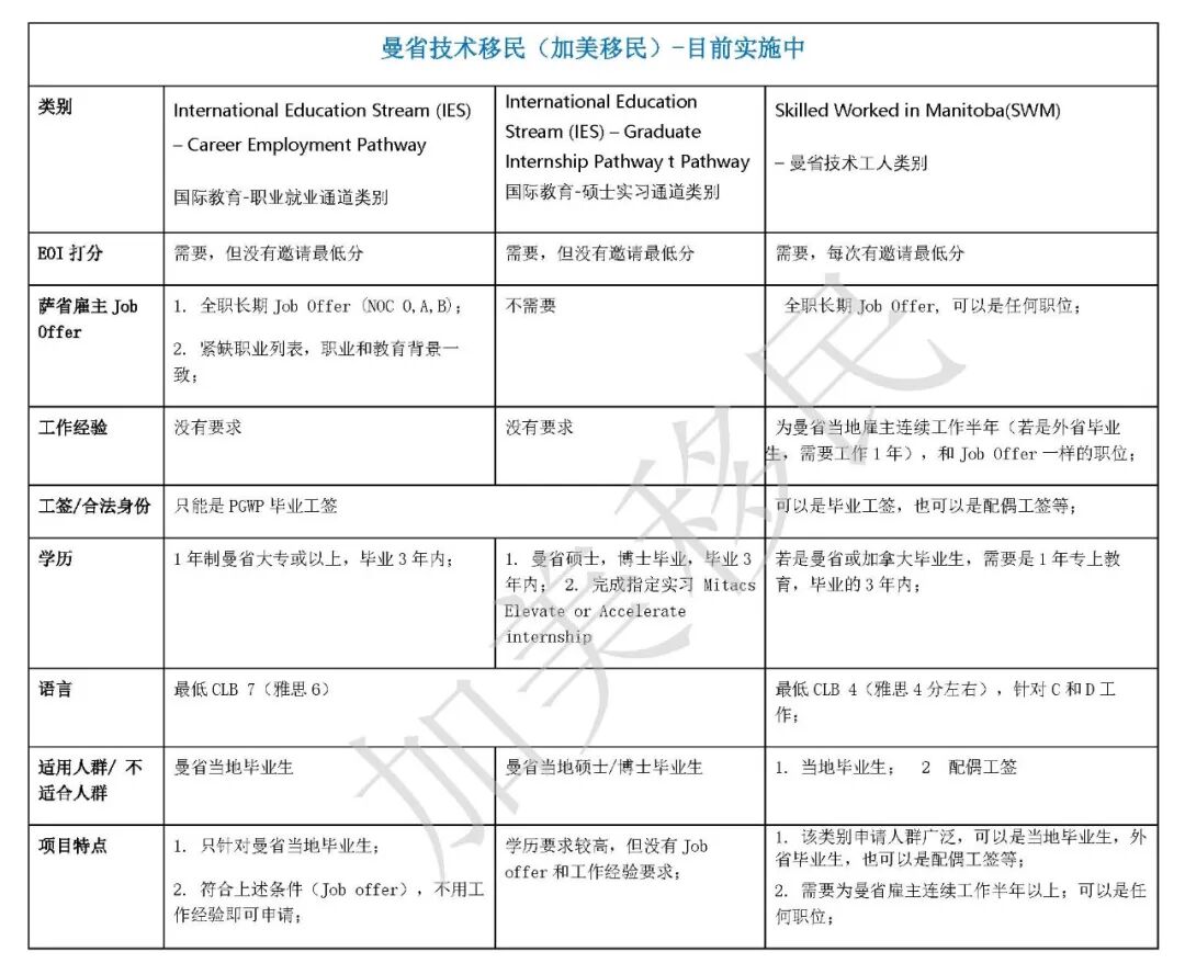 曼省毕业生适用的移民途径是国际教育类别,International Education Stream (IES) 是曼省移民厅专门为曼省毕业生量身定做的项目。